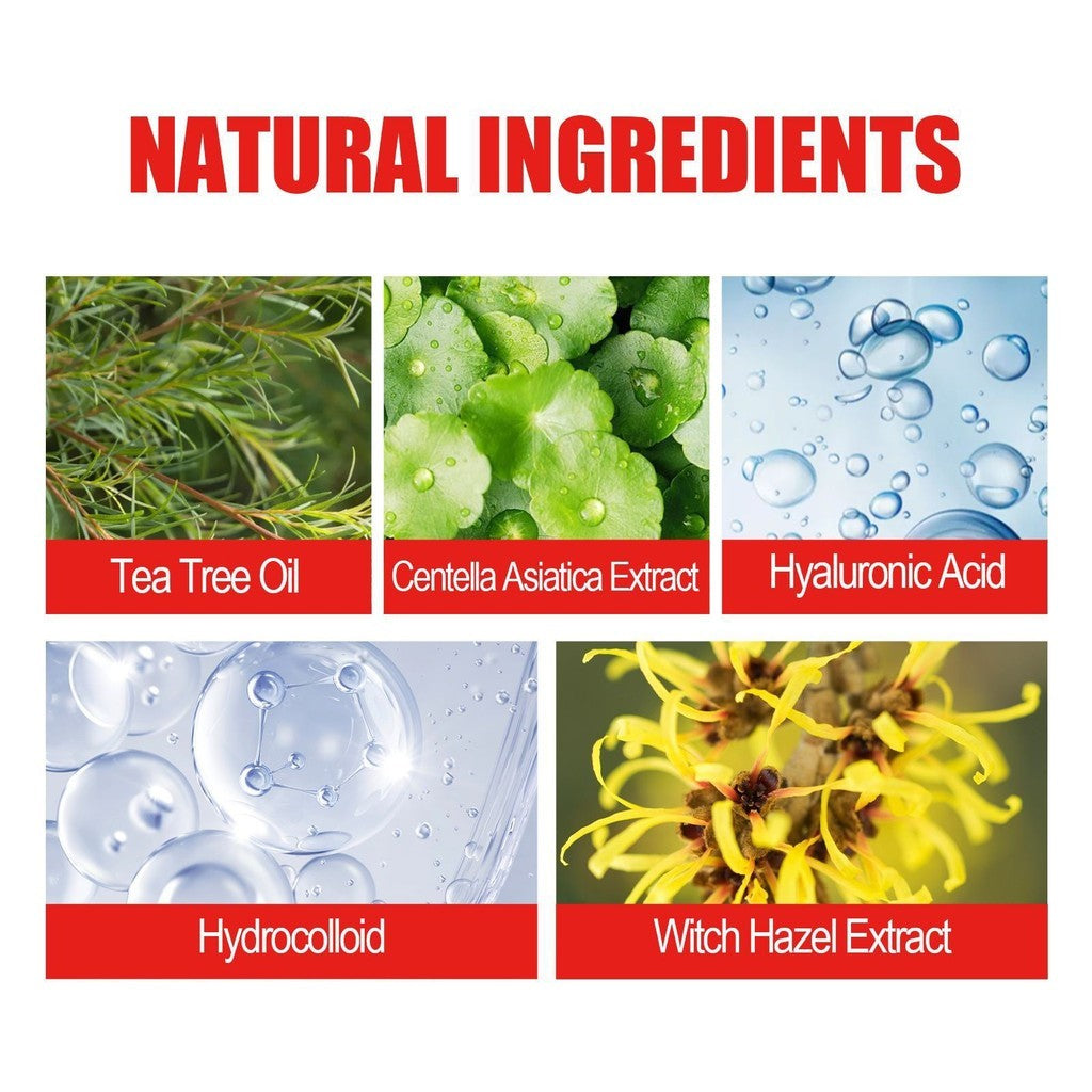 Hydrocolloid – a skin-safe material that absorbs oil and pus while speeding up healing.